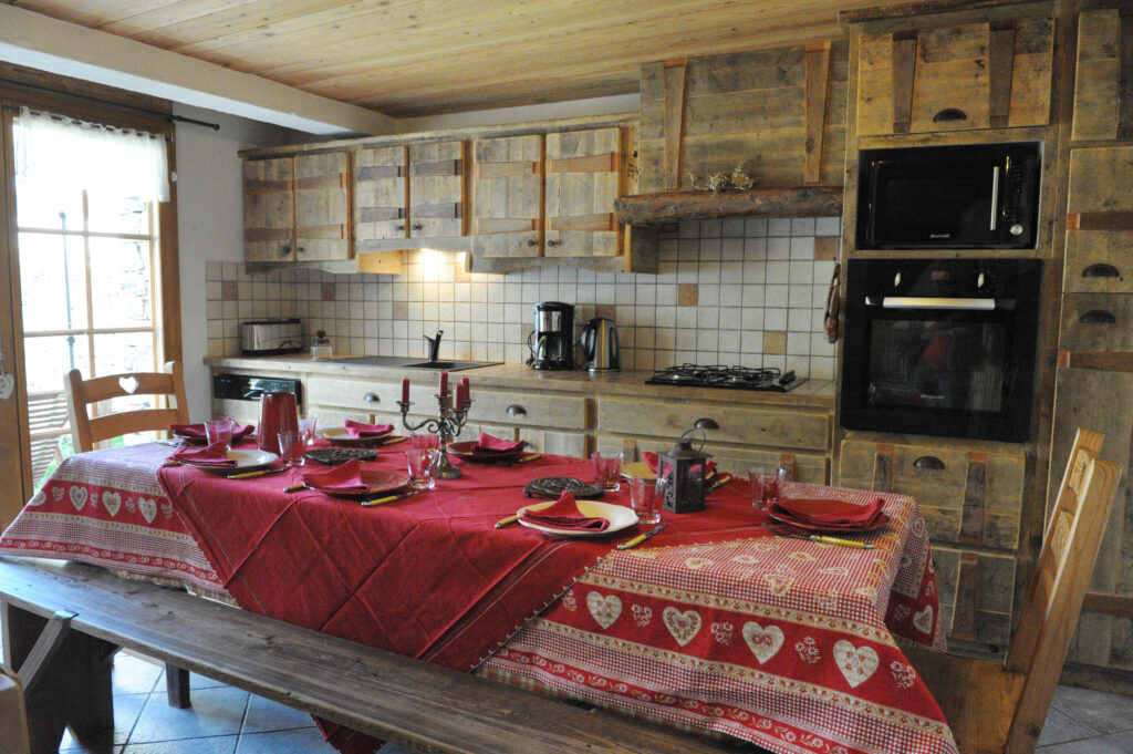 La pièce à vivre, exposée plein est, est baignée de lumière dès le matin. Elle réunit une cuisine ouverte parfaitement équipée et un salon convivial autour d’une cheminée à foyer ouvert le bois est fourni pour vos soirées au coin du feu. Aux beaux jours, la terrasse attenante offre un espace idéal pour les repas en plein air, bien que son accès soit limité durant l’hiver à cause de la neige abondante.
